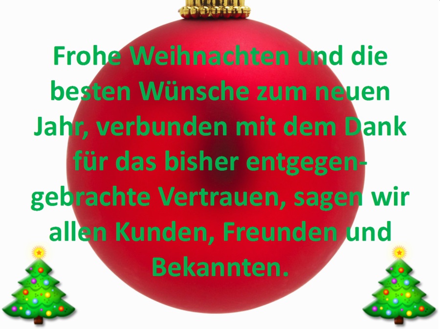 Wir wünschen Ihnen ein friedliches Weihnachtsfest und alles Gute für das neue Jahr!